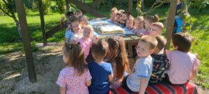 A Mese-domb Óvódából érkeztek vendégek 2025 szeptember 19-én iskolánk kertjébe. A Maci és Méhecske csoport tagjai óvónőik kíséretében voltak nálunk. A gyerekek érdeklődve járták be a kert különböző tereit. Figyelmesen hallgatták meg a hely történetét, a kertben termesztett növényekhez kapcsolódva a Répa mesét.